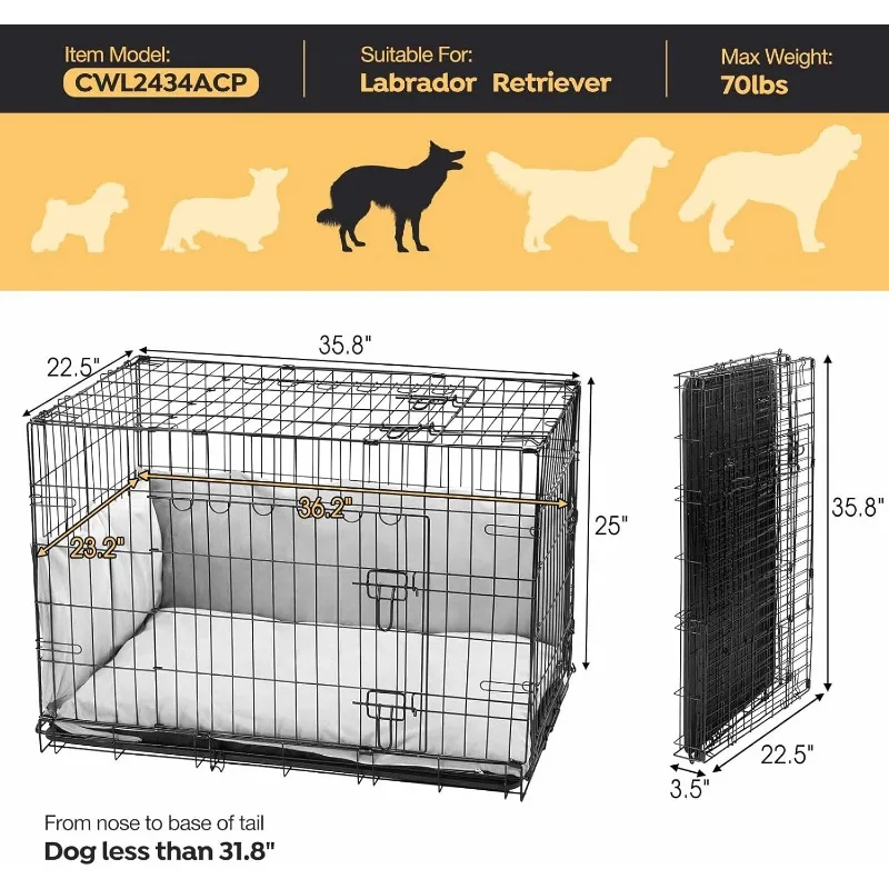 - Dog Cage Kit: Our large dog crate is constructed from durable metal-wire. Include: 1 x metal wire dog crate, 1 x soft dog crate pad, 1 x carrying handle, 1 x removable leak-proof pan tray.